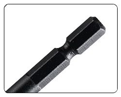Rowkowany chwyt sześciokątny zapobiega ślizganiu się w uchwycie wiertarskim lub przedłużce wiertła.