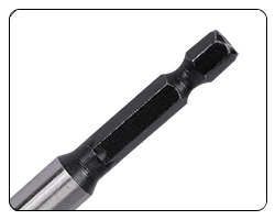 Rowkowany chwyt sześciokątny zapobiega ślizganiu się w uchwycie wiertarskim lub przedłużce wiertła. Pasuje do wszystkich standardowych uchwytów szybkiej wymiany 1/4".